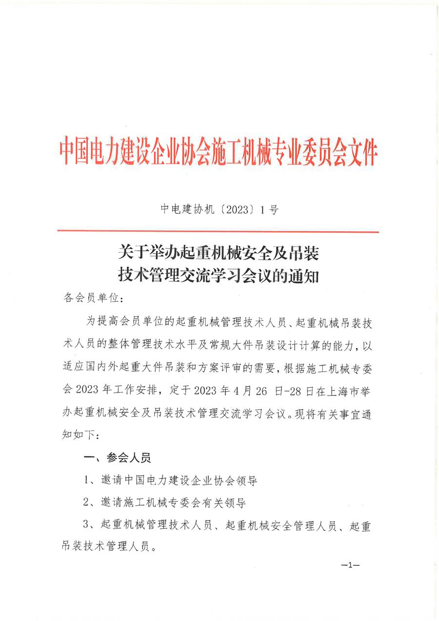 關于舉辦起重機械安全及吊裝技術管理交流學習會議的通知