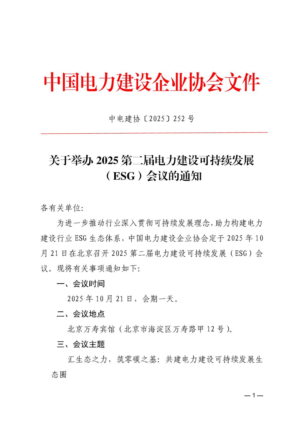 關于舉辦2025第二屆電力建設可持續發展(ESG)會議的通知